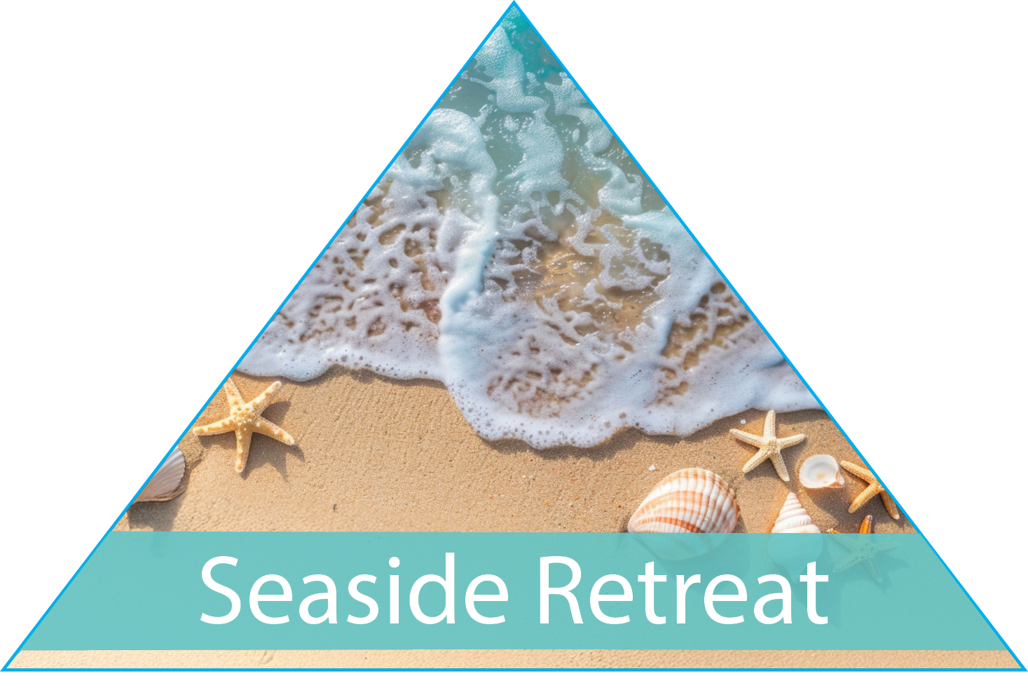 Refreshing and serene, Seaside Retreat features top notes of sparkling water and clary sage, heart notes of rose, lavender and elemi and base notes of oak moss, musk, cedarwood, and sandalwood.